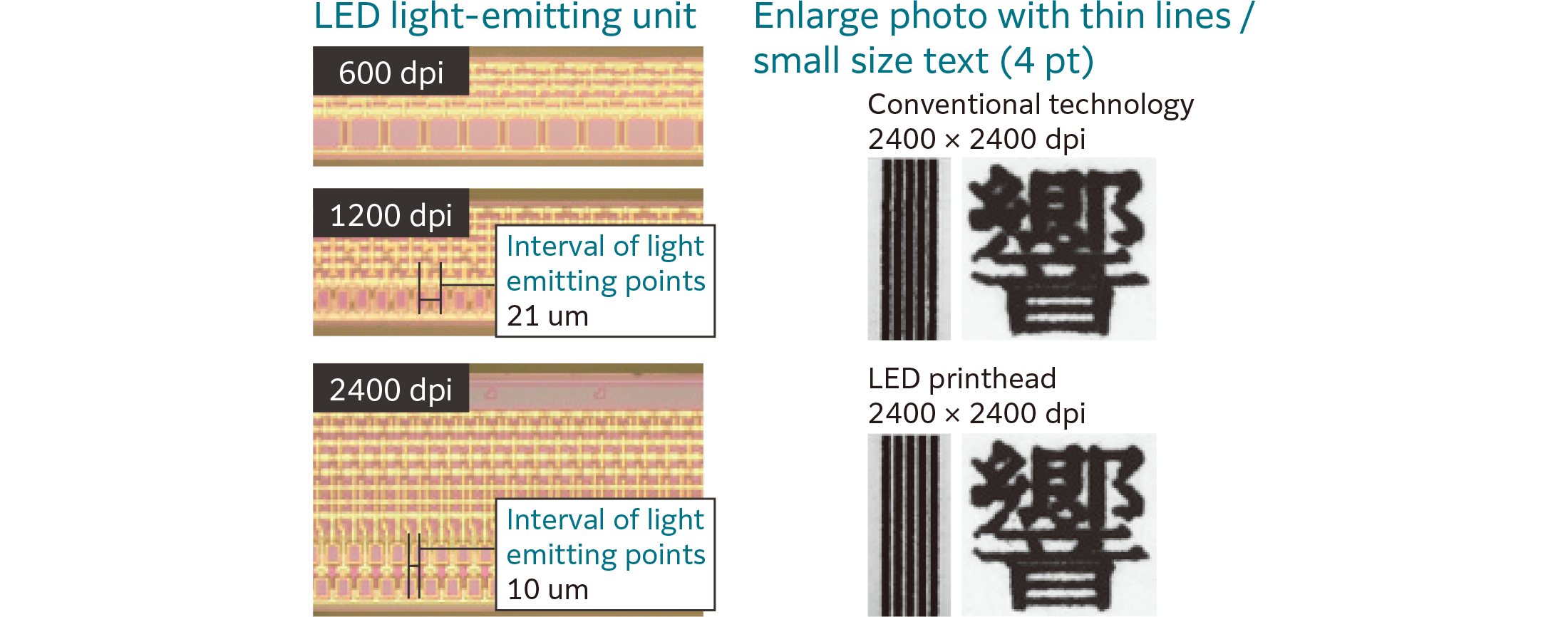 - World's first* LED printhead with 2,400dpi resolution.