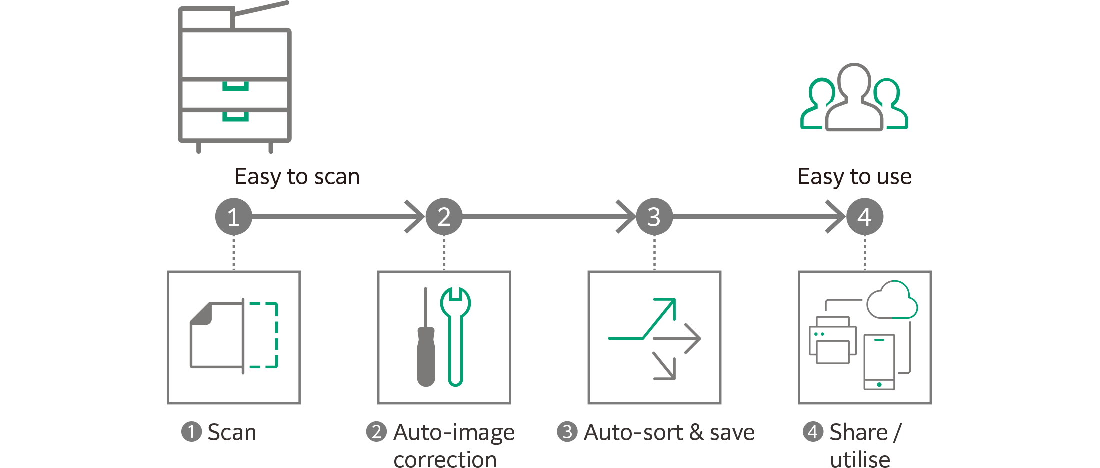 - Scan documents to be delivered to fixed destination