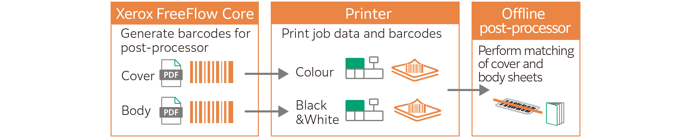 The efficiency of booklet making operation can be improved by using barcodes for post-processor.