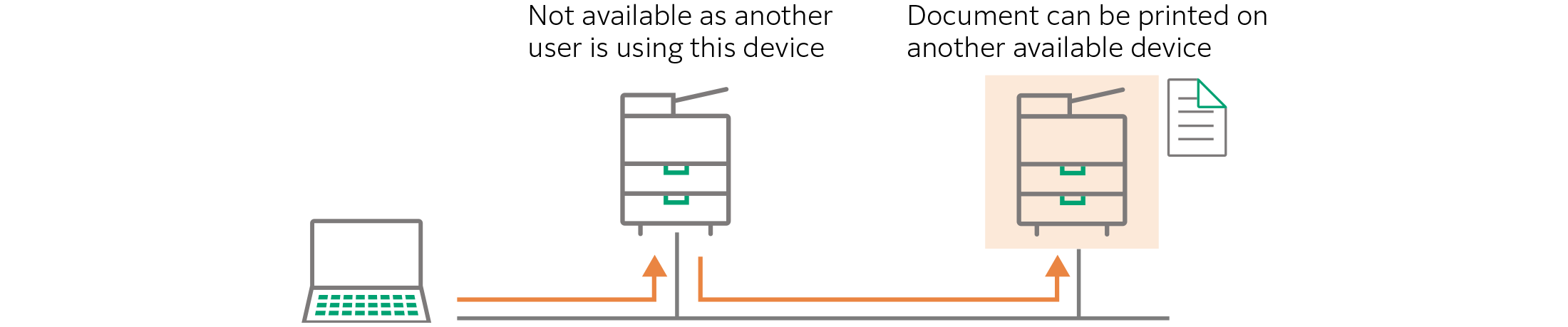 Even if the device you selected for output is occupied, you can print your documents from another available device on the network.