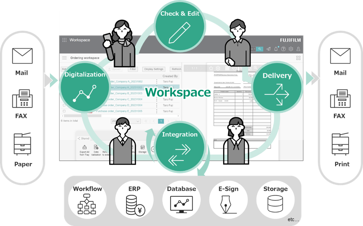 FUJIFILM IWpro是一個雲端工作間,能將紙張、電郵及傳真當中的資料整合,同時透過一系列的業務操作,將資料妥善整理,例如數碼化、確認、處理、打印和傳送。雲端工作間更可連接多個現有系統,方便公司與內部及外界的持份者輕鬆分享資料。