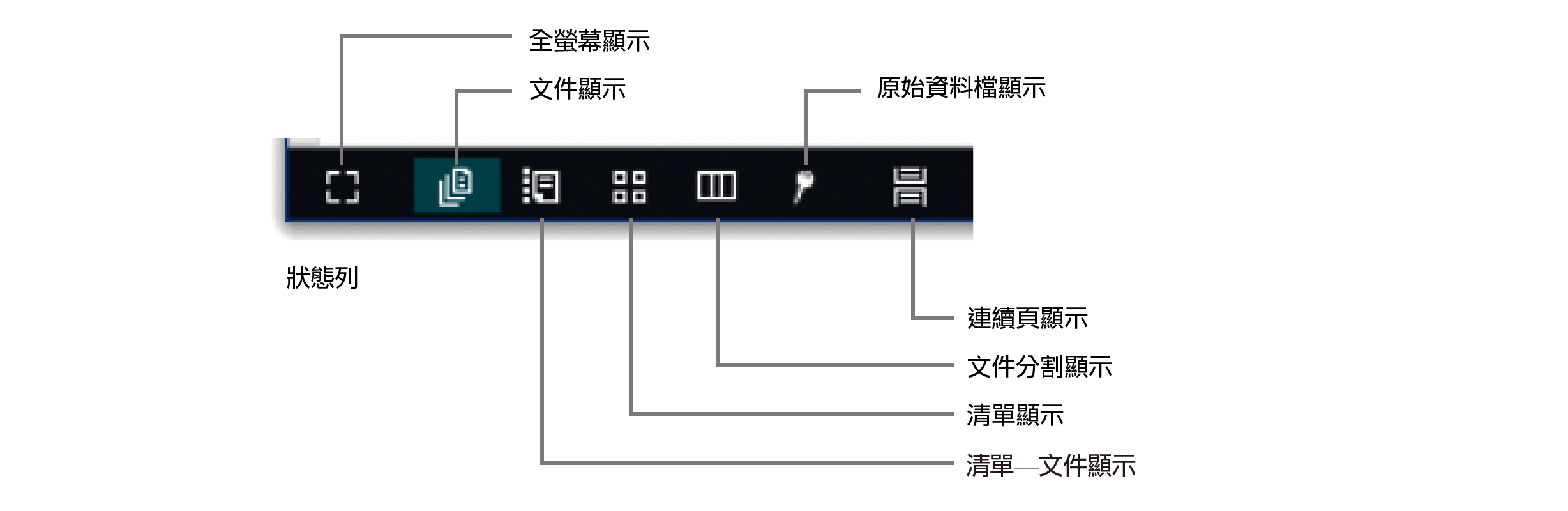 除了一般的文件顯示之外,點選「連續頁顯示」後,可滾動滑鼠閱覽多頁的文件,或是點選「文件分割顯示」,即可分割視窗檢視同一檔案中的不同頁面。