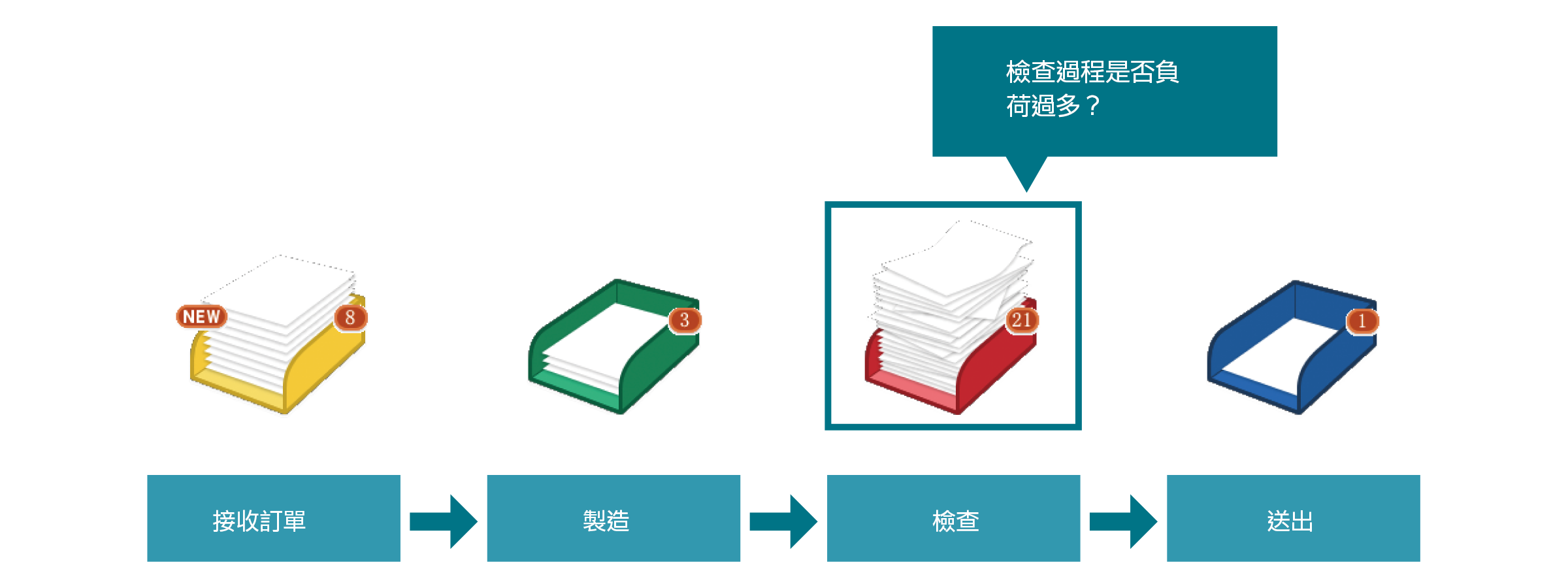 在桌面上顯示所有與您目前工作相關的紙盤,以便隨時檢視各處理步驟的文件數量及狀況,讓您快速找出流程中的瓶頸與確認負載量,以改善效率。