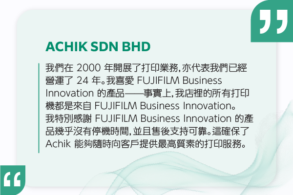在過去十年中,FUJIFILM Business Innovation 與我們的客戶和合作夥伴合作,以滿足他們各種需求,提供定製和現成解決方案。閱讀他們的故事,了解我們如何應對他們的主要商業挑戰,取得卓越成果,從收入增長、生產力提升到長期可持續性。