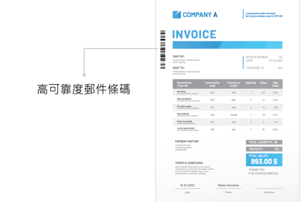 - 每頁信函均配以識別條碼,並經郵遞系統確認。