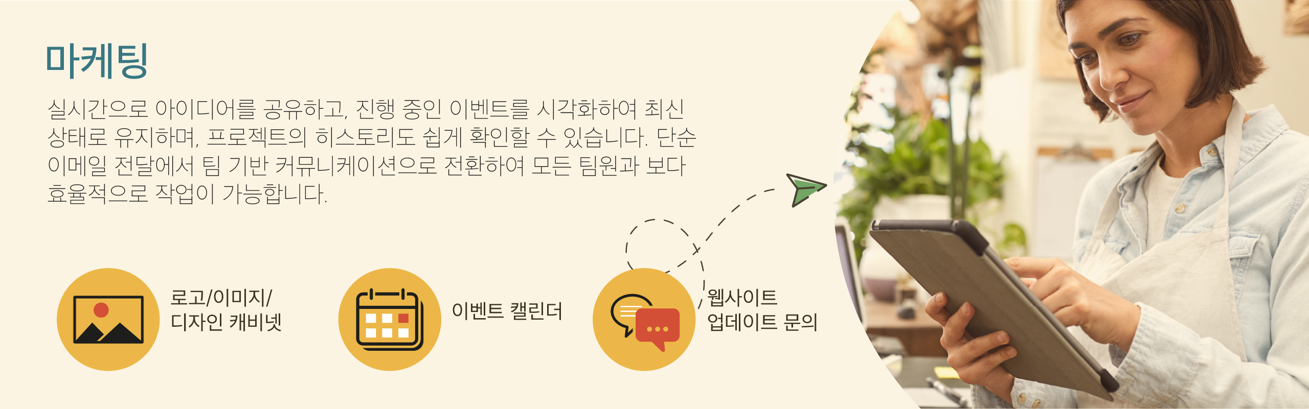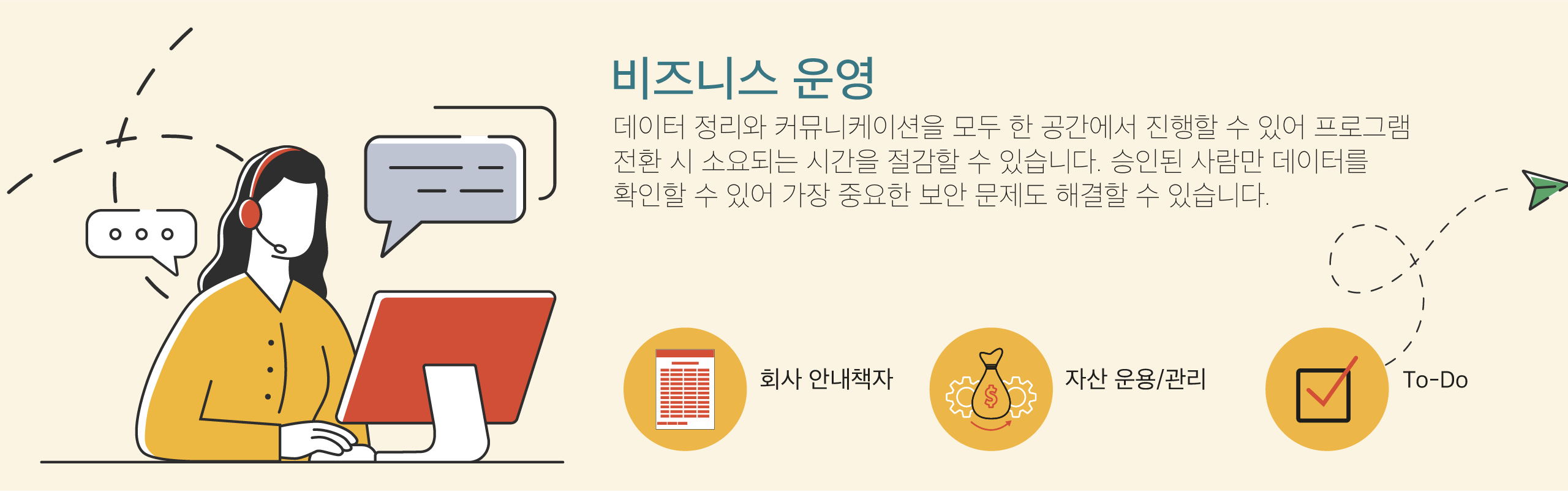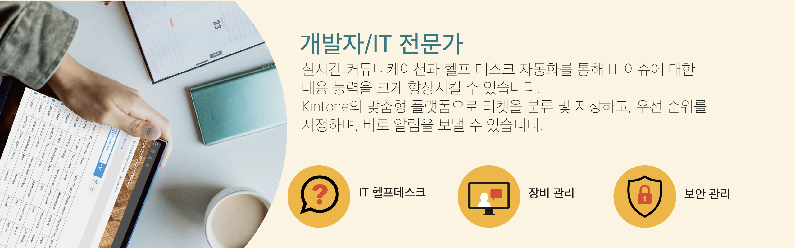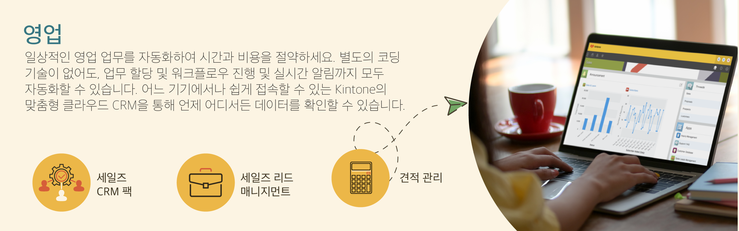 영업 팀에는 CRM 앱, 회계 팀에는 경비 보고가 필요하며, 마케팅 팀에는 소셜 미디어 및 블로그 게시 일정을 관리할 수 있는 캘린더가 필요합니다.Kintone에서는 이 모든 애플리케이션을 여러분이 원하는 방식 그대로 디자인할 수 있습니다. 필요한 모든 앱을 만들고, 각기 다른 플랫폼이 아닌, 하나의 중앙 대시보드에서 모든 데이터를 편리하게 확인하세요.