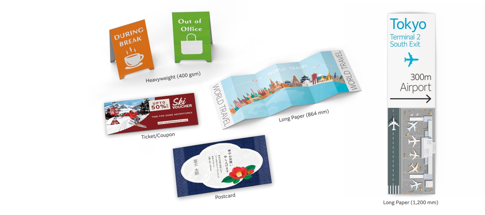 Support heavyweight coated or uncoated media for business card, postcard, envelope, invitation card, and more.