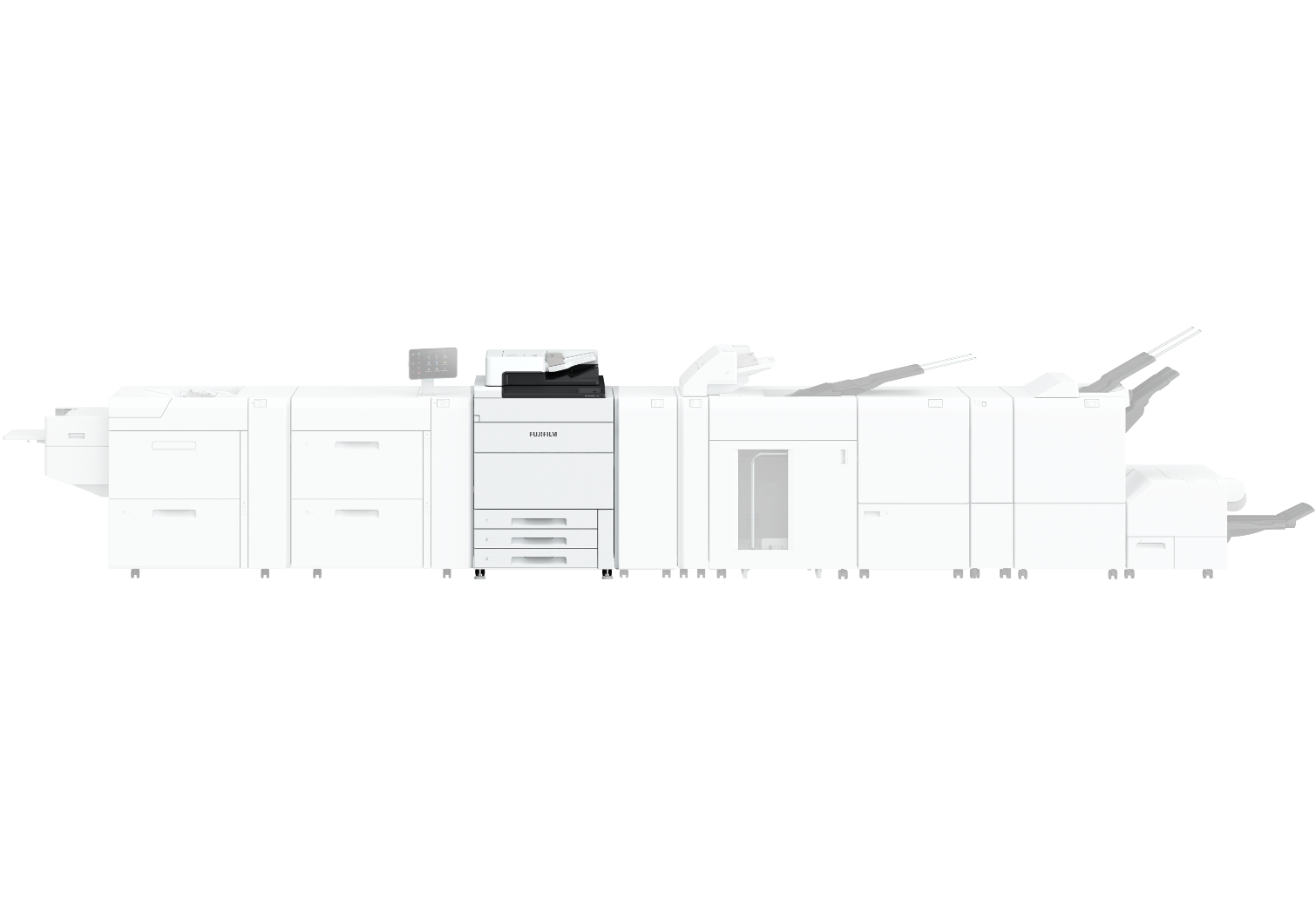 A unit with multiple functions to enhance finishing of printed materials. It can sort/stack documents, fold, staple, punch holes, and saddle staple booklets. Long Catch Tray accommodates extended paper sizes for convenient stacking. *Add-on is required for module compatibility