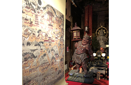 (1) Replica of Nariai-ji Sankei Mandala (Nariai-ji Temple pilgrimage mandala), which is in the possession of Nariai-ji Temple in Miyazu-shi, Kyoto. This mandala was drawn to attract visitors to the temple and as a map of the sacred ground.
