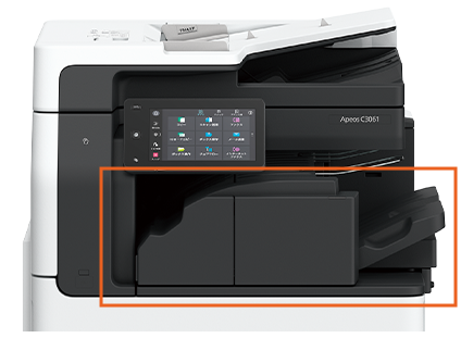 Supports output from three locations for Copy, Fax, and Print functions. This way, important received faxes are not missed, and output paper can be quickly retrieved.