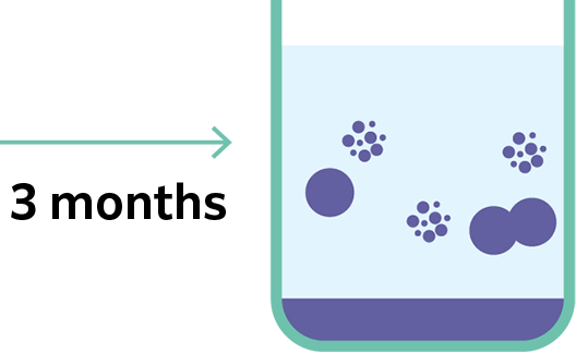 After 3 months, the larger agglomerates have started to settle out at the bottom of the ink container.