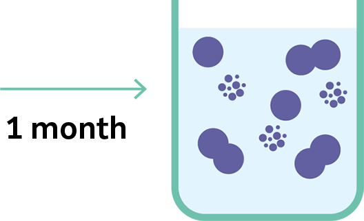 After 1 month, the UV ink dispersion starts to break down and also agglomerate forming larger clumps of UV ink.