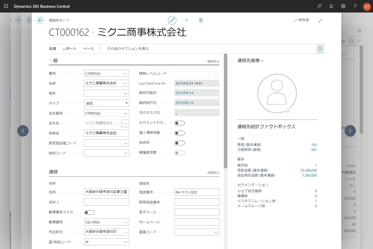 顧客情報や見込み客情報を「連絡先」として一元管理します。商談の記録や営業案件のプロセス管理なども可能です。