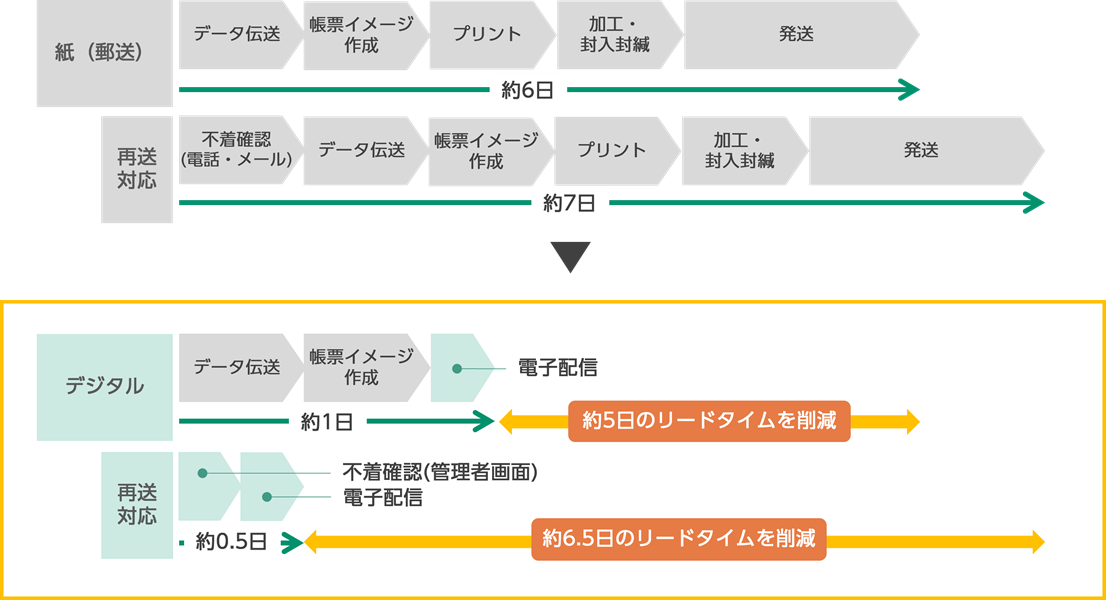 - 不着や誤削除時の再送リードタイムも大幅に短縮