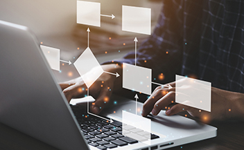お客様の業務システムから連携されるデータを基に、用途や目的に合わせた帳票作成をご提案。適切なプリント方法でユーザーにお届けします。運用上のリスクを可視化し、業務品質向上のためのプロセス設計もご支援します。