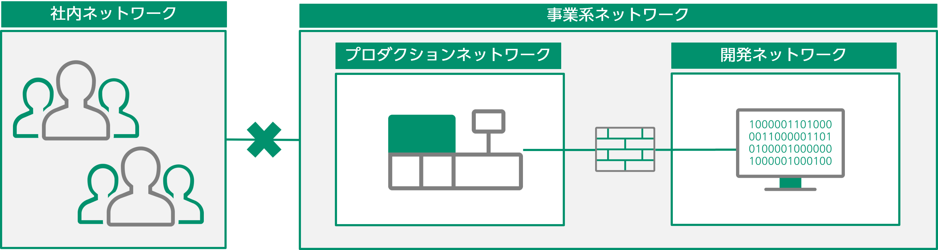 - 社内・事業系ネット―ワークの物理的および論理的分離