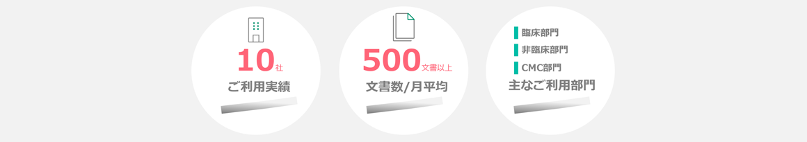- 依頼部署数および原稿入稿担当者数:臨床、非臨床、CMC、その他(約50名から依頼)