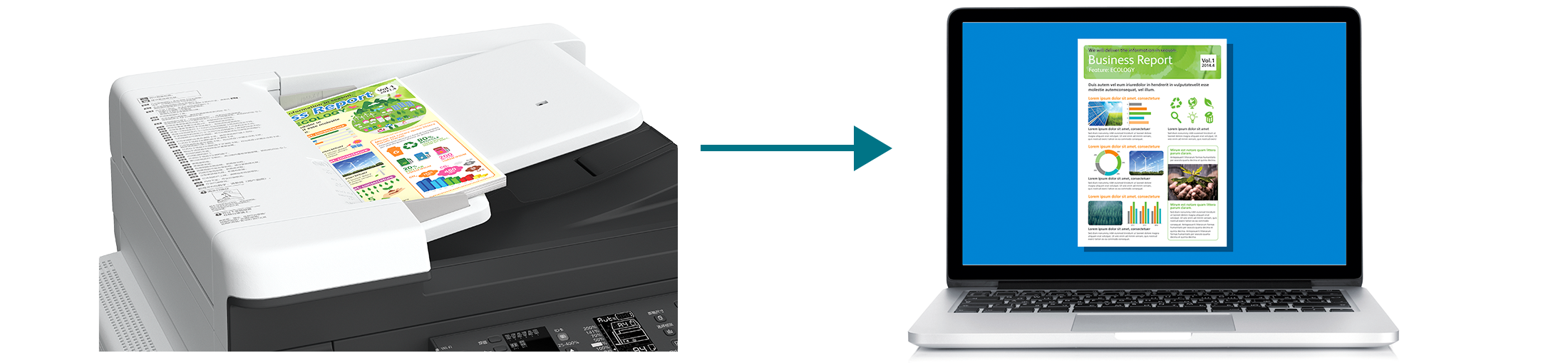 สามารถทำการสแกนสีได้โดยตรงจากเครื่องพีซี แปลงเอกสารที่แก้ไขให้เป็นรูปแบบดิจิทัลที่มีสีสันสวยงาม ช่วยให้ดูข้อมูลง่ายและประหยัดเวลา