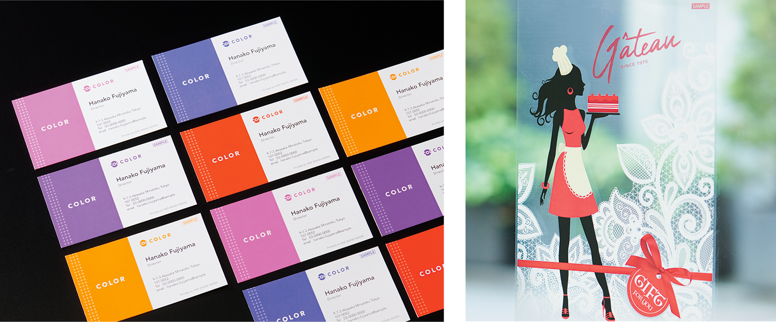 นอกจากผงหมึก CMYK แล้ว เครื่องพิมพ์ยังสามารถเพิ่มผงหมึกสีพิเศษได้อีกถึง 2 ช่อง คุณสามารถเลือกผงหมึกสีพิเศษ เช่น สีใส*, สีทอง, สีเงิน, สีขาว, สีชมพู และสีแดงแบบกำหนดเอง* ได้ตามต้องการ การซ้อนทับสี CMYK ลงบนสีเงินหรือสีทองจะช่วยทำให้คุณสามารถพิมพ์สีเมทัลลิกที่สดใสได้อีกมากมายหลายเฉด งานพิมพ์สีสันสวยงามถูกสร้างจากชุดประมวลผลงานพิมพ์แบบ 6 สีจะช่วยเพิ่มโอกาสทางธุรกิจให้คุณได้อย่างสมบูรณ์แบบ