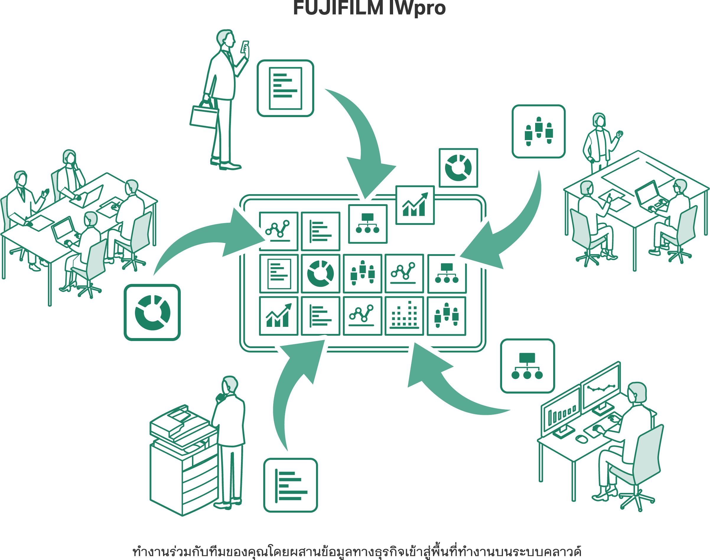 การสร้างสภาพแวดล้อมที่ทุกคนสามารถดึงศักยภาพของตนออกมาได้อย่างเต็มที่ และนำความสามารถไปใช้ทำงานที่สร้างสรรค์และส่งผลกระทบเชิงบวกได้มากยิ่งขึ้น ถือเป็นหนึ่งในแนวทางแก้ไขปัญหาสำคัญที่ทั่วโลกต้องการ รวมถึงในภูมิภาคเอเชียแปซิฟิก FUJIFILM Business Innovation เป็นองค์กรชั้นนำที่อยู่แนวหน้าของการนำเสนอนวัตกรรมด้านโซลูชันโดยมี ‘FUJIFILM IWpro’ เป็นโซลูชันที่สร้างการทำงานบนแพลตฟอร์มระบบดิจิทัลที่ล้ำสมัย สามารถเชื่อมต่อทีมทั้งภายในและภายนอกองค์กรได้อย่างไร้รอยต่อ โดยรวบรวมข้อมูลไว้ในระบบคลาวด์ พร้อมทั้งเปลี่ยนแปลงรูปแบบการสื่อสารและการทำงานร่วมกันของทีมงาน คุณชิโระ คิกูจิเน้นย้ำว่า "โซลูชันที่ดีที่สุดในโลกไม่ได้หมายความว่าจะเหมาะสมที่สุดสำหรับลูกค้าของเรา สิ่งที่สำคัญจริงๆ คือการเข้าใจวัฒนธรรมเฉพาะตัวของลูกค้าแต่ละราย แม้จะมาจากประเทศหรืออุตสาหกรรมที่แตกต่างกัน และนำเสนอโซลูชันที่ปรับแต่งอย่างเหมาะสมและทันท่วงที เพื่อช่วยเหลือลูกค้าให้ก้าวข้ามความท้าทายได้อย่างต่อเนื่อง"