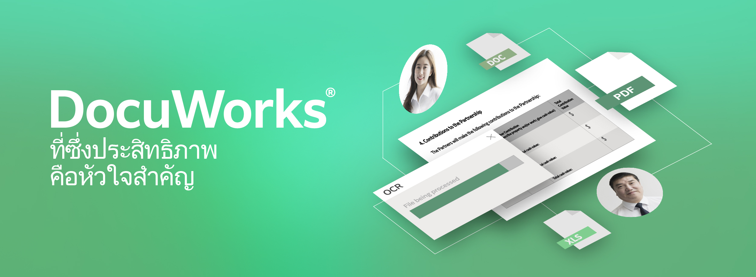 จะดีแค่ไหนถ้าคุณสามารถจัดเรียงไฟล์ไหนก็ได้บนแพลตฟอร์มดิจิทัลที่ปลอดภัย ได้เหมือนกับการทำงานกับเอกสารกระดาษบนโต๊ะของคุณจริงๆ เมื่อไฟล์ทั้งหมดของคุณถูกจัดเก็บในแบบดิจิทัลบน DocuWorks ทุกอย่างก็เข้าถึงได้ในคลิกเดียว รวมถึงเครื่องมือต่างๆ สำหรับ แก้ไข เขียนอธิบาย ค้นหา ให้อนุญาต แชร์ หรือบันทึกบนคลาวด์ กับไฟล์ของคุณ ให้โต๊ะของคุณสะอาดและชาญฉลาดยิ่งกว่าที่เคย