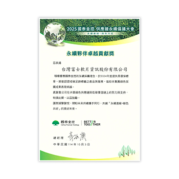 該獎項肯定公司積極落實綠色環保的理念,也展現我們致力成為企業永續發展夥伴的承諾。