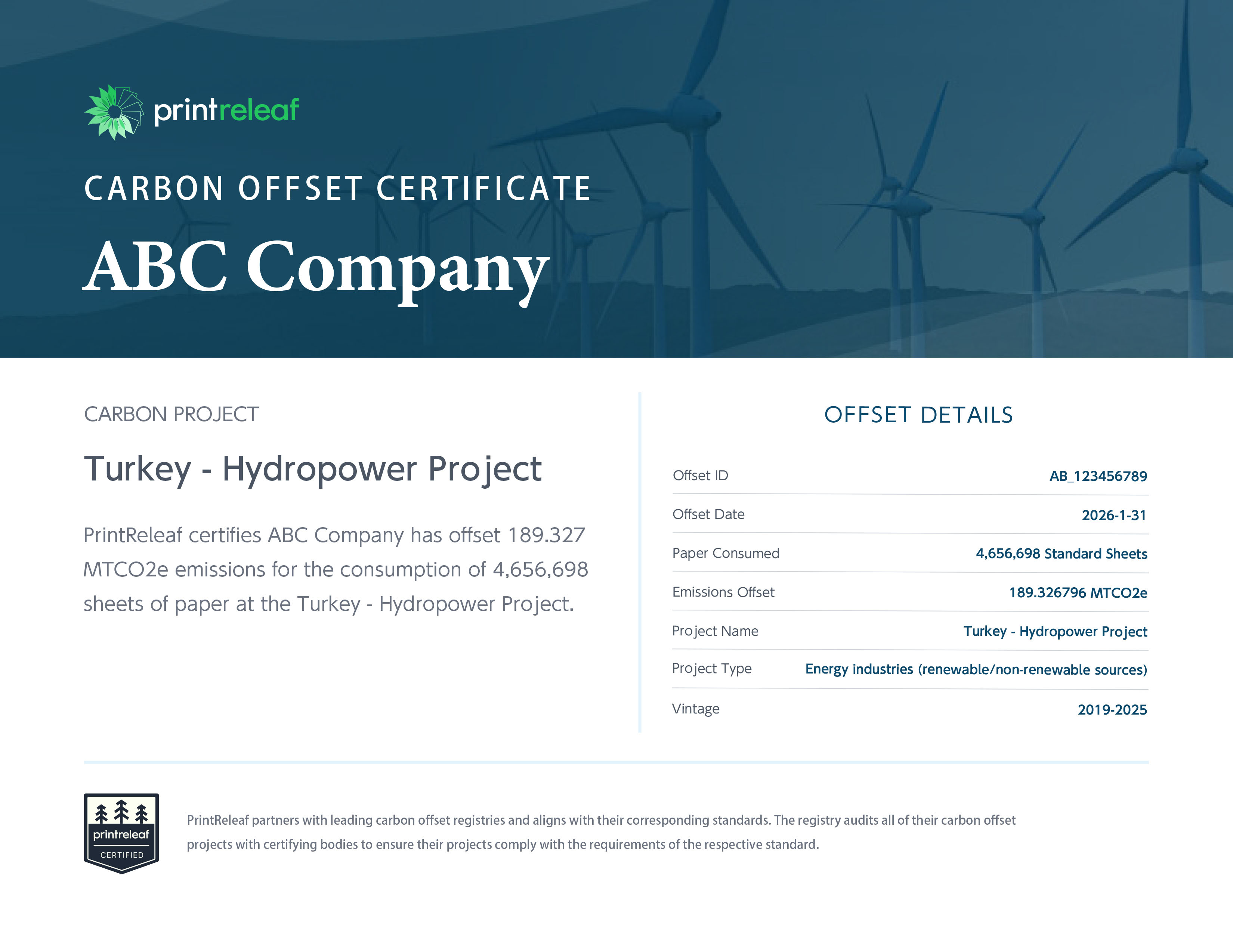 PrintReleaf 讓企業透過再造林和碳抵換對無法避免的紙張使用而耗用的地球資源承擔責任、轉化為「負責任的列印」。其透明化、經第三方機構監察的植林項目或碳權證書及報告不僅可用於企業 ESG 績效揭露或永續報告,更體現企業責任與品牌價值的升級。