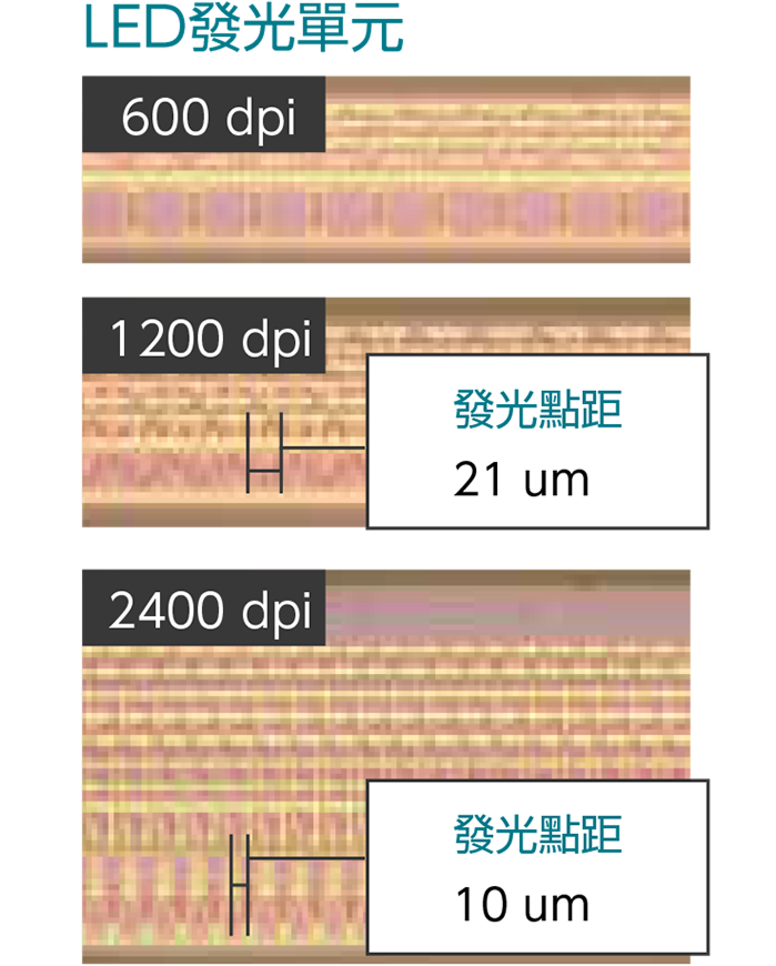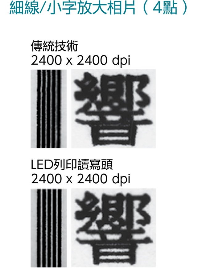 精巧且具有高畫質的 LED 列印讀寫頭,畫質更銳利,解析度更高。