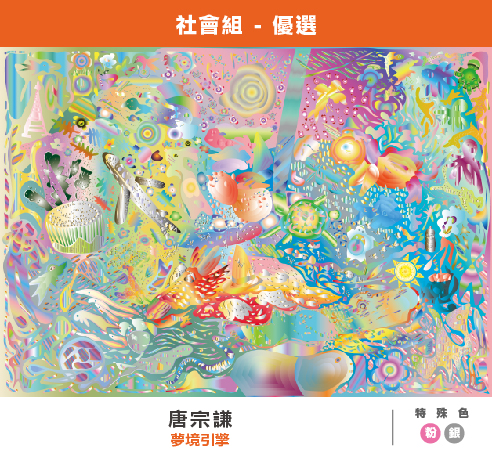 評審評語:強烈個人風格與技法層次感豐富,將設備第五色的金色及粉色發揮的淋漓盡致看得出創作者的技巧成熟