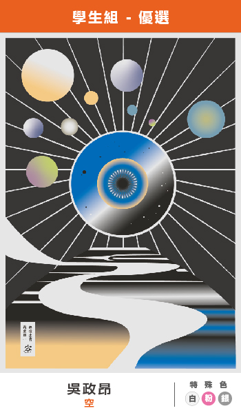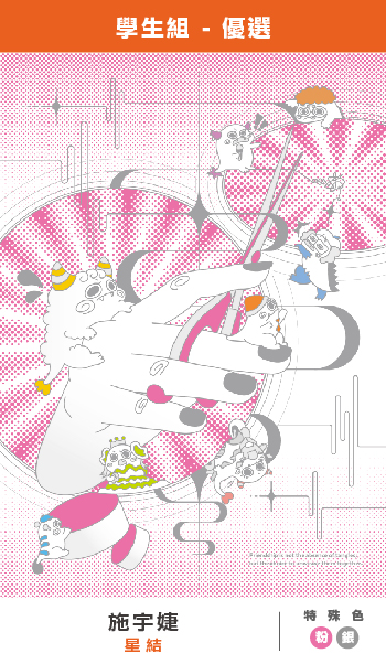 評審評語:大膽又創新,挑戰抽象圖像構成的邊界探索,透過複雜的線條中加入特別色