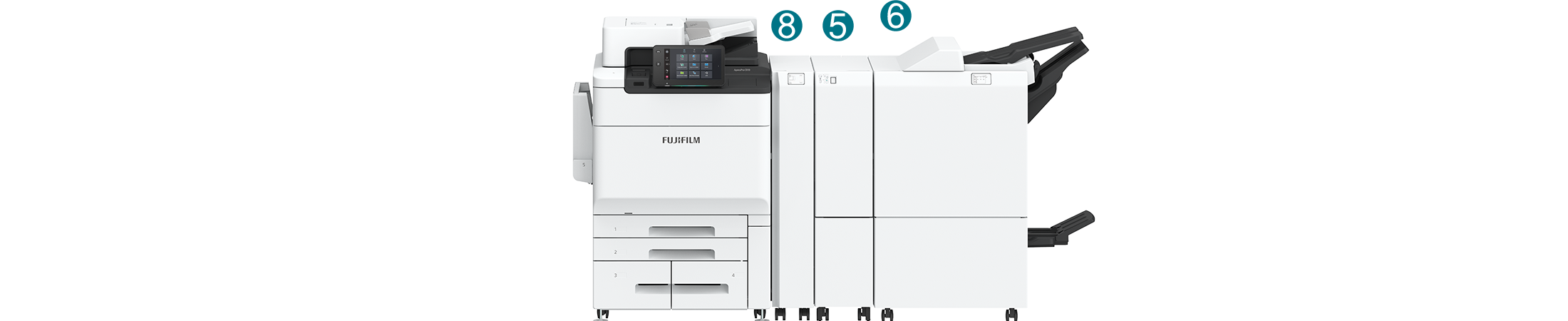 - *3: Dập không ghim có trong Bộ hoàn thiện C5 và Bộ hoàn thiện C5 có bộ đóng sách.