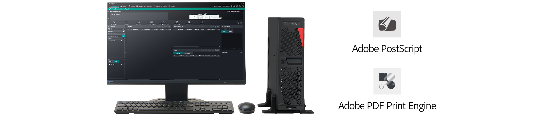 Adobe® PDF Print Engine rip trực tiếp dữ liệu PDF. Xử lý được cả tập tin PDF có hiệu ứng trong suốt hoặc nhiều lớp hệt như bản gốc với tốc độ nhanh hơn và in ra ảnh chất lượng cao.