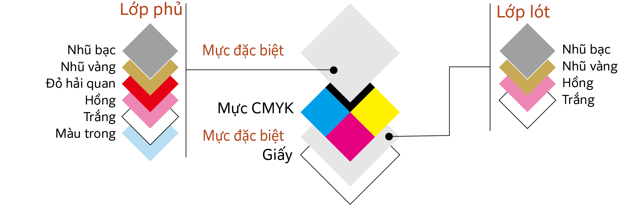 - Ghi chú: Người dùng có thể đổi màu của các màu đặc biệt. Dễ dàng và nhanh hơn so với in offset.