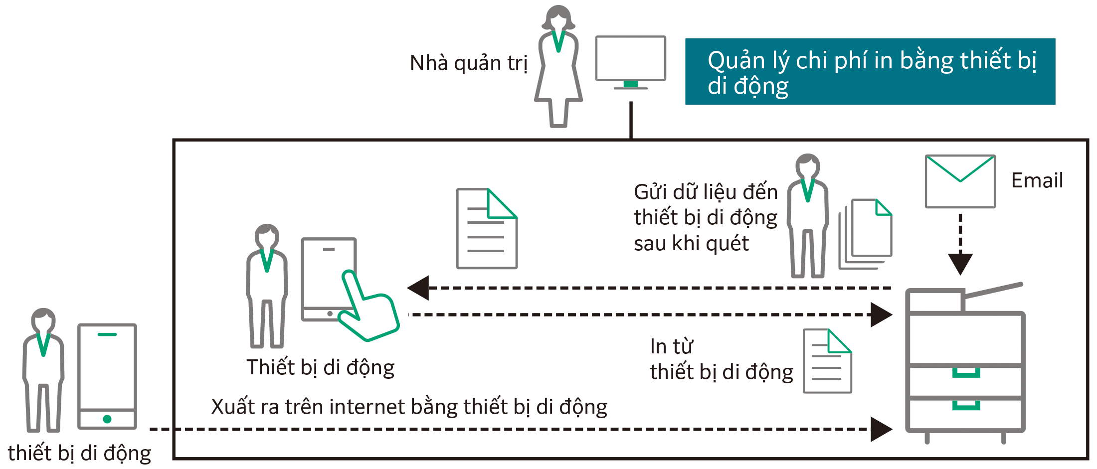 Hiện nay, số lượng các thiết bị đa chức năng, máy in, máy fax cũng như nhu cầu sử dụng thiết bị di động đang tăng trưởng rất mạnh. Số lượng thiết bị tăng lên cũng sẽ khiến công việc trở nên phức tạp hơn, kéo theo các vấn đề về thời gian quản lý, nguy cơ rò rỉ thông tin, gia tăng chi phí, tắc nghẽn đầu ra, chậm trễ trong công việc, v.v.