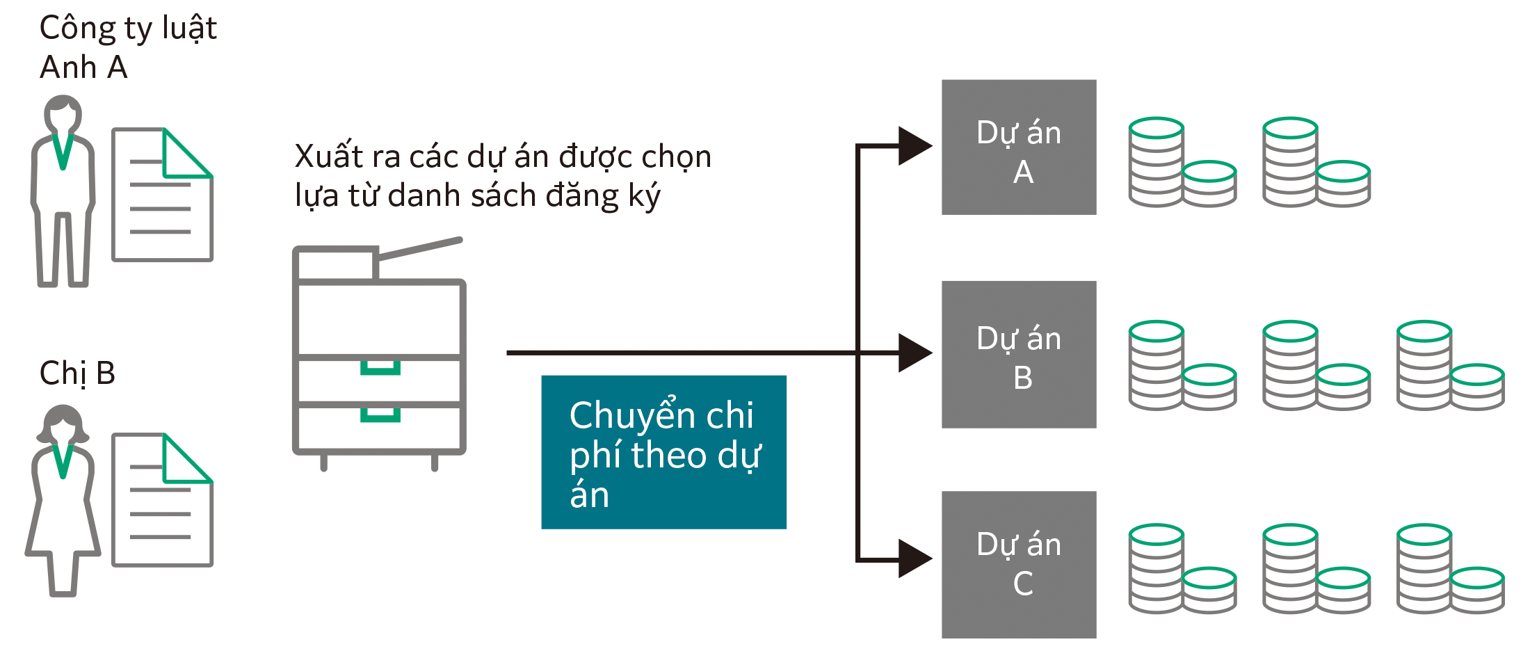 Chẳng hạn như tại các công ty luật hay văn phòng kiến trúc thường xuyên phải thực hiện nhiều dự án cùng một lúc, nếu chúng ta đăng ký trước tài khoản cho từng dự án. Nhờ vậy, có thể sử dụng kết quả thống kê để chuyển chi phí.