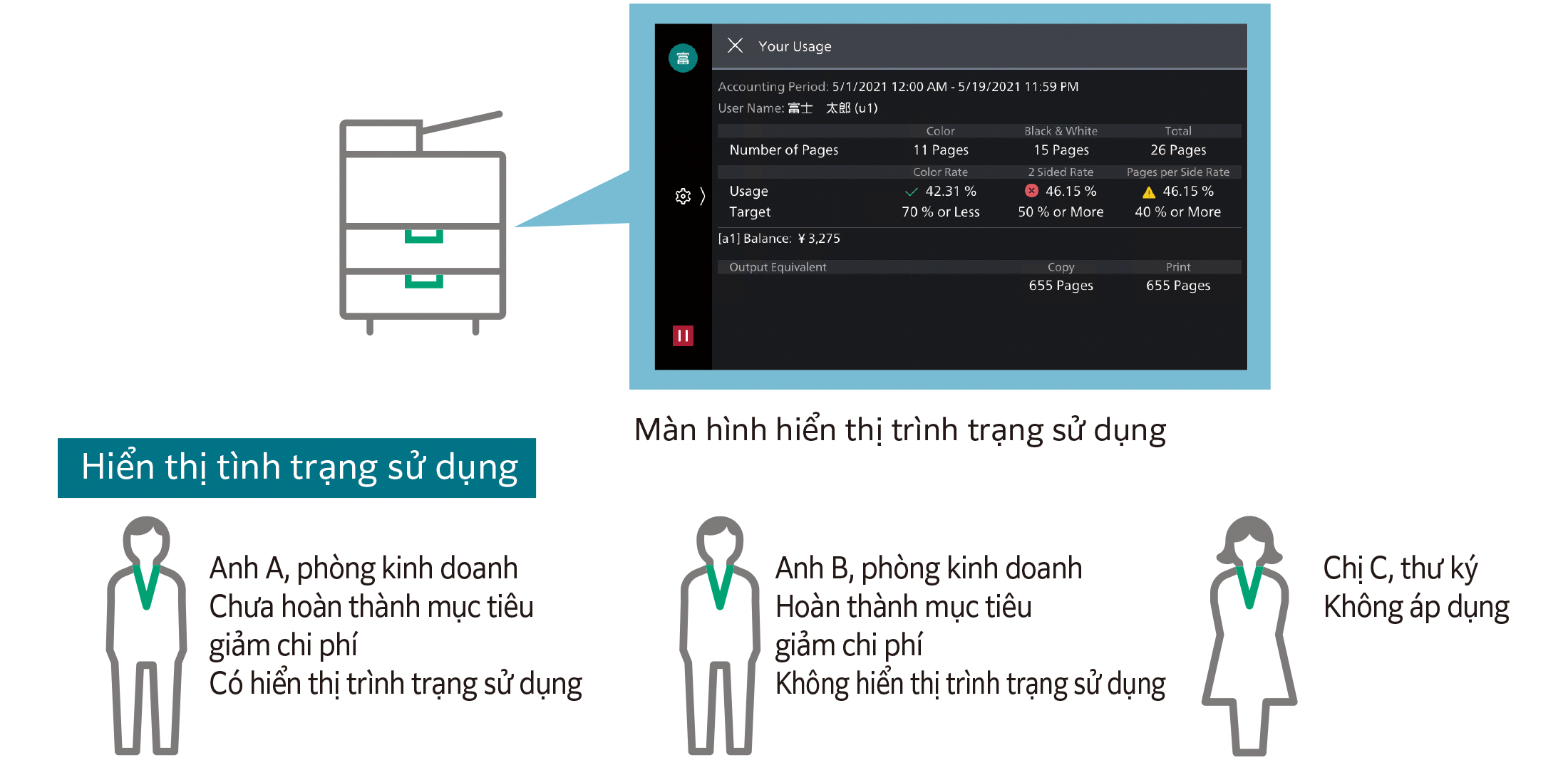 Hiển thị tình trạng sử dụng / Để mỗi nhân viên có ý thức hơn về chi phí