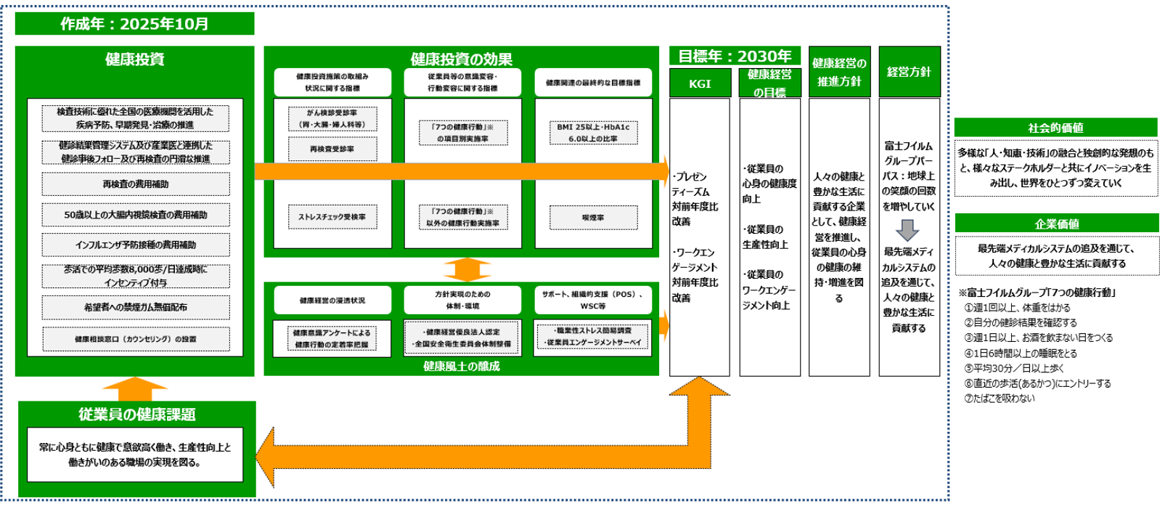 また、富士フイルムホールディングスは従業員の健康維持・増進を重要経営課題としてとらえ、2019年9月に「FFグループ健康経営宣言」を制定しました。