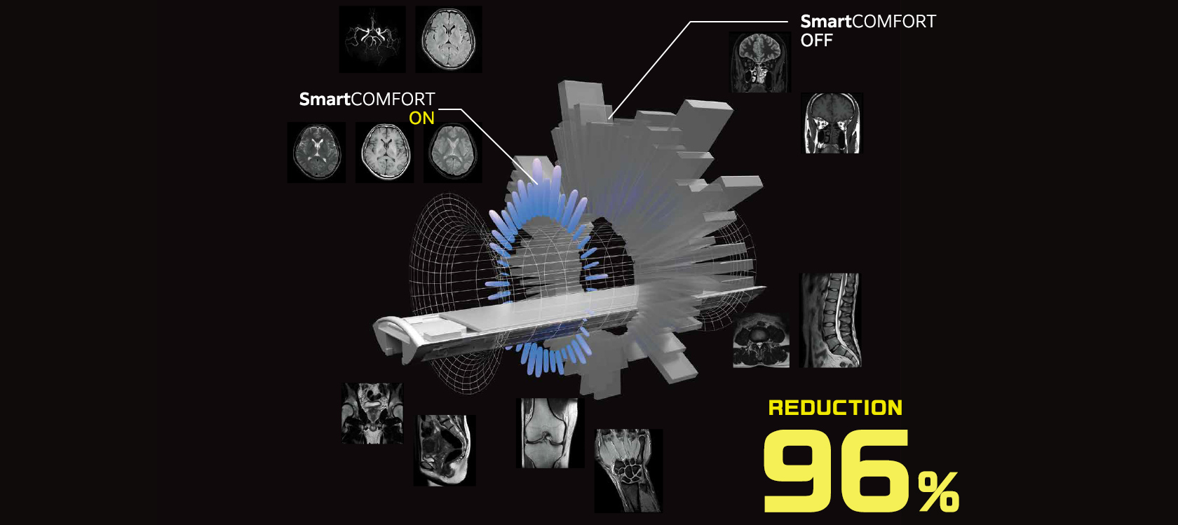 With SmartCOMFORT, the gradient magnetic field pulse form has been changed and the imaging parameters adjusted, keeping a balance between the imaging time, contrast, image SN ratio, and spatial resolution to reduce any impact the noise reduction technology may have.