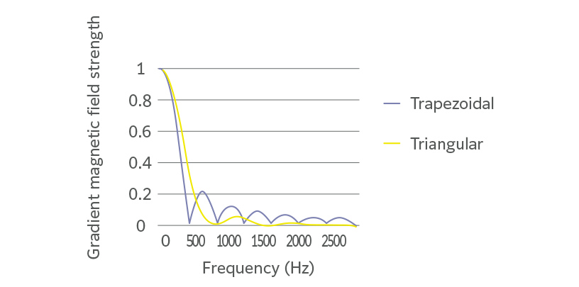 Changing the waveform of the gradient magnetic field changes the frequency characteristics.