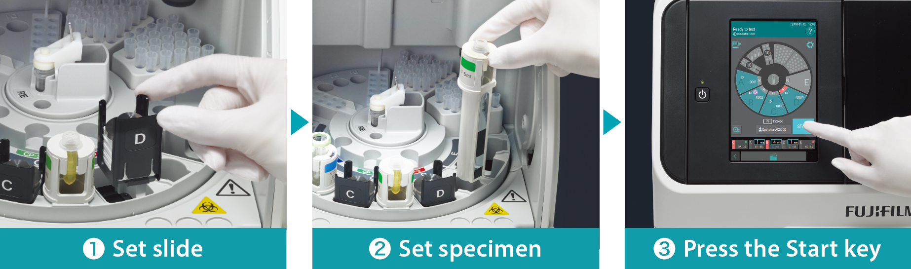 Set the slide, the specimen and press the START key. All the processes hereafter are fully automated.