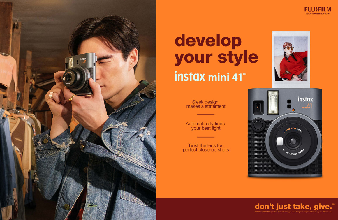 TOKYO, April 8, 2025 – FUJIFILM Corporation announces the launch of “instax mini 41™” (mini 41), a new entry model of the instax series of instant cameras, allowing users to enjoy on-the-spot photo printing. It will be available in Japan on April 17, 2025.