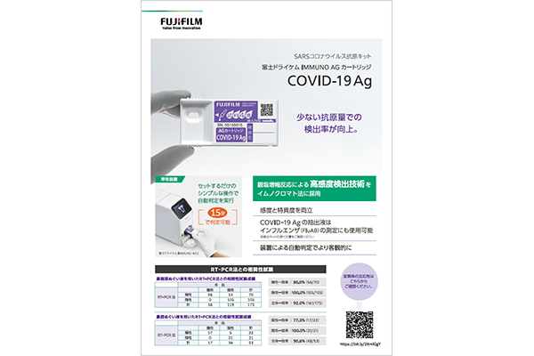 分析測定機器「IMMUNO AG」シリーズの専用カートリッジ「富士ドライケム IMMUNO AG カートリッジ COVID-19 Ag」のカタログ。