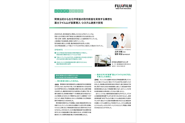 社会福祉法人 子の神福祉会 特別養護老人ホーム 富士見プラザにおける、感染症検査装置「富士ドライケム IMMUNO AG」シリーズの導入事例。