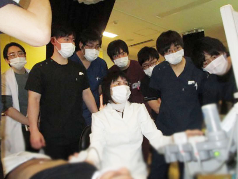 最近は超音波検査をオーダーするだけで技師さんにまかせっきりにしてしまう医師の超音波離れが気になります。超音波は、その場でリアルタイムに得られる情報があり、より速く対応が必要な患者さんの検査や治療の組み立てができる有用性があります。医師がポータブルエコーを持って自分で患者さんを診るということを大事にしていくべきと考えます。