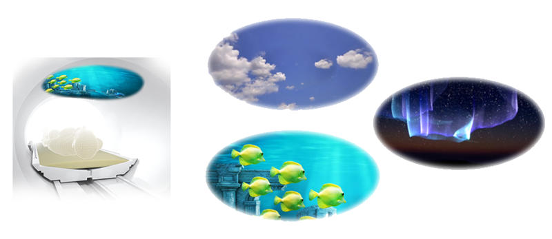 また、オープンMRIにおいても、開口ボア下面に映像を投影することで、同様の効果を狙ったシステムも発売しました。