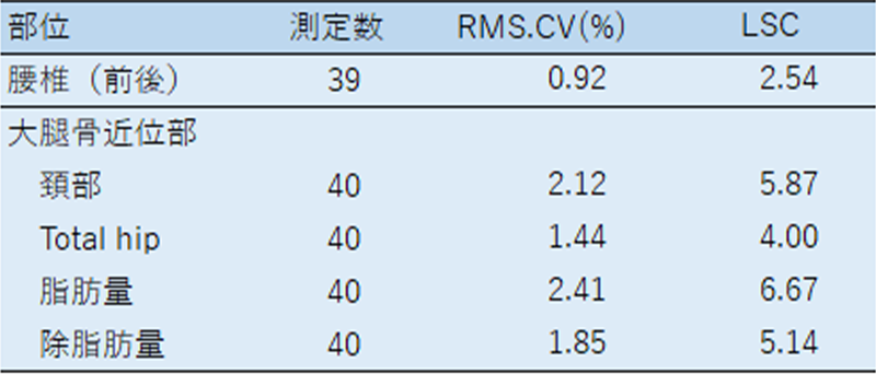 表1 当院で行ったDXA装置ALPHYS LFの測定精度と最小有意変化