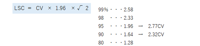 統計的にLSC値は、95%信頼区間を持たせる場合、CVの2.77倍以上の変化をもって有意とされる。(図1)
