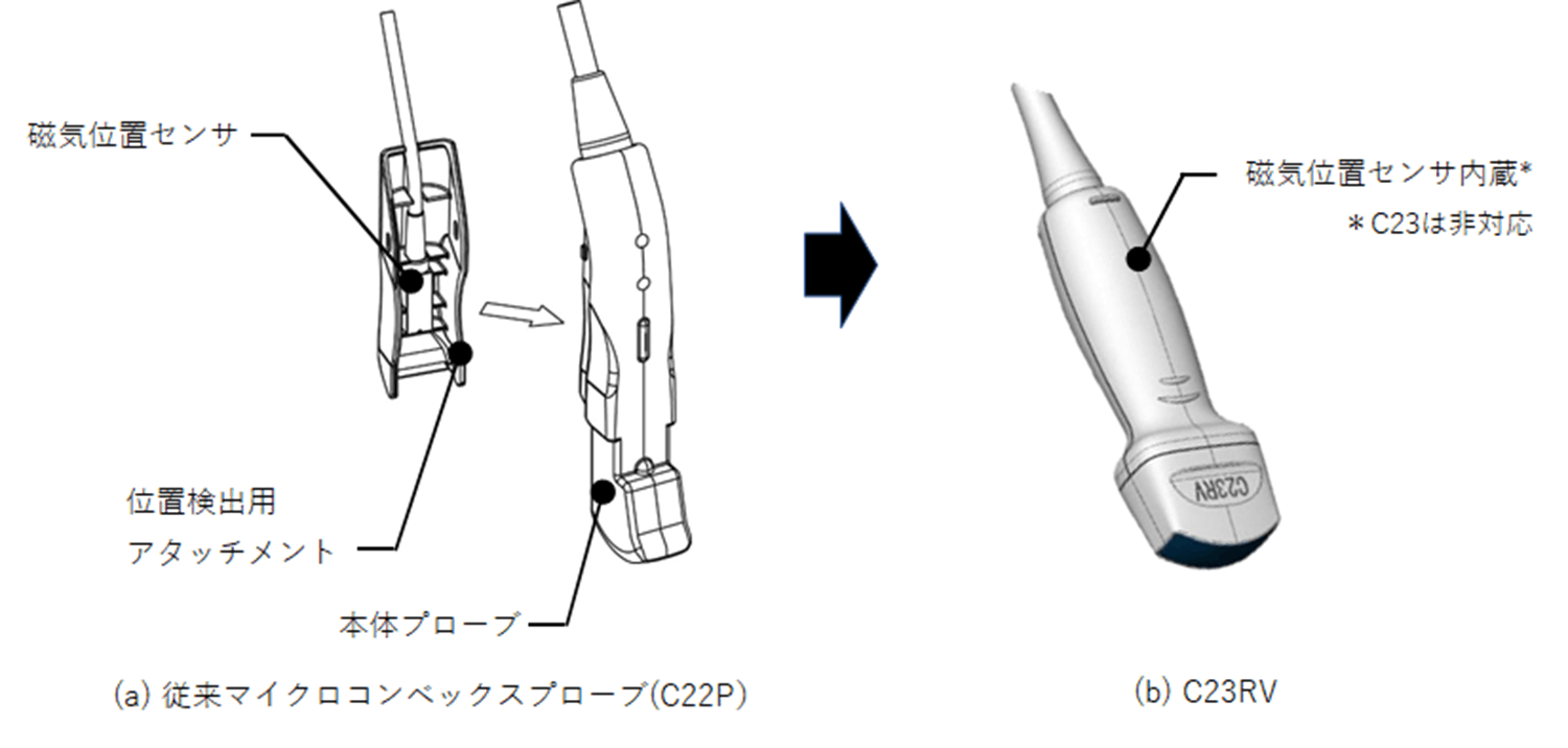 図6 従来マイクロコンベックスプローブとC23RVの違い