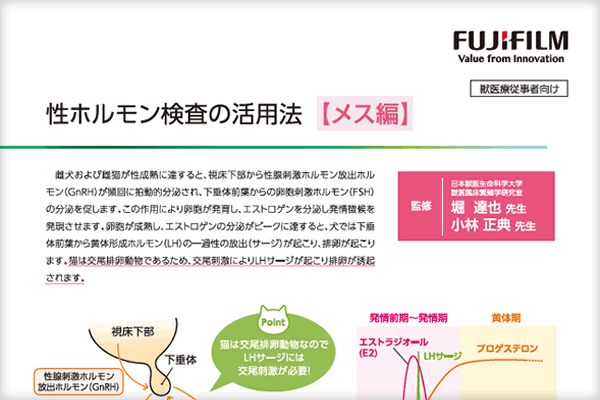 メスで活用できる性ホルモン検査について、適応や試験方法、結果解釈についてご紹介しています。 監修:日本獣医生命科学大学 獣医臨床繁殖学研究室 堀 達也 先生、小林 正典 先生