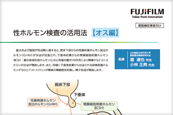 オスで活用できる性ホルモン検査について、適応や試験方法、結果解釈についてご紹介しています。 監修:日本獣医生命科学大学 獣医臨床繁殖学研究室 堀 達也 先生、小林 正典 先生